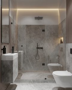 The goal of the lavatory design is to create a serene sanctuary where relaxation, comfort, and personal rejuvenation are at the forefront. The spaces are transformed into elegant retreats that serve as a private oasis within the home. The emphasis is on creating an environment that invites calmness, balance, and a sense of peaceful luxury.